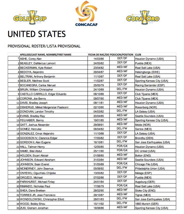 After what seems like an eternity ago now, Klinsmann announced the preliminary USMNT Gold Cup roster on Friday afternoon. Donovan, Oguhci Onyewu and Carlos Bocanegra all made the squad. While the list released to the press caused quite a stir, with plenty of the players’ full names drawing comments from the press. Brekken, Seamus and Bradley Ray?